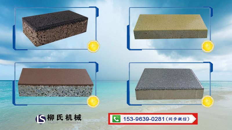 (4) 彩石環(huán)氧通體透水磚:材質(zhì)骨料為天然彩石與進口改性環(huán)氧樹脂膠合,經(jīng)特殊工藝加工成形,并可拼出各種藝術圖形和色彩線條,給人們一種賞心悅目的感受。主要用于園林景觀工程和高檔別墅小區(qū)。